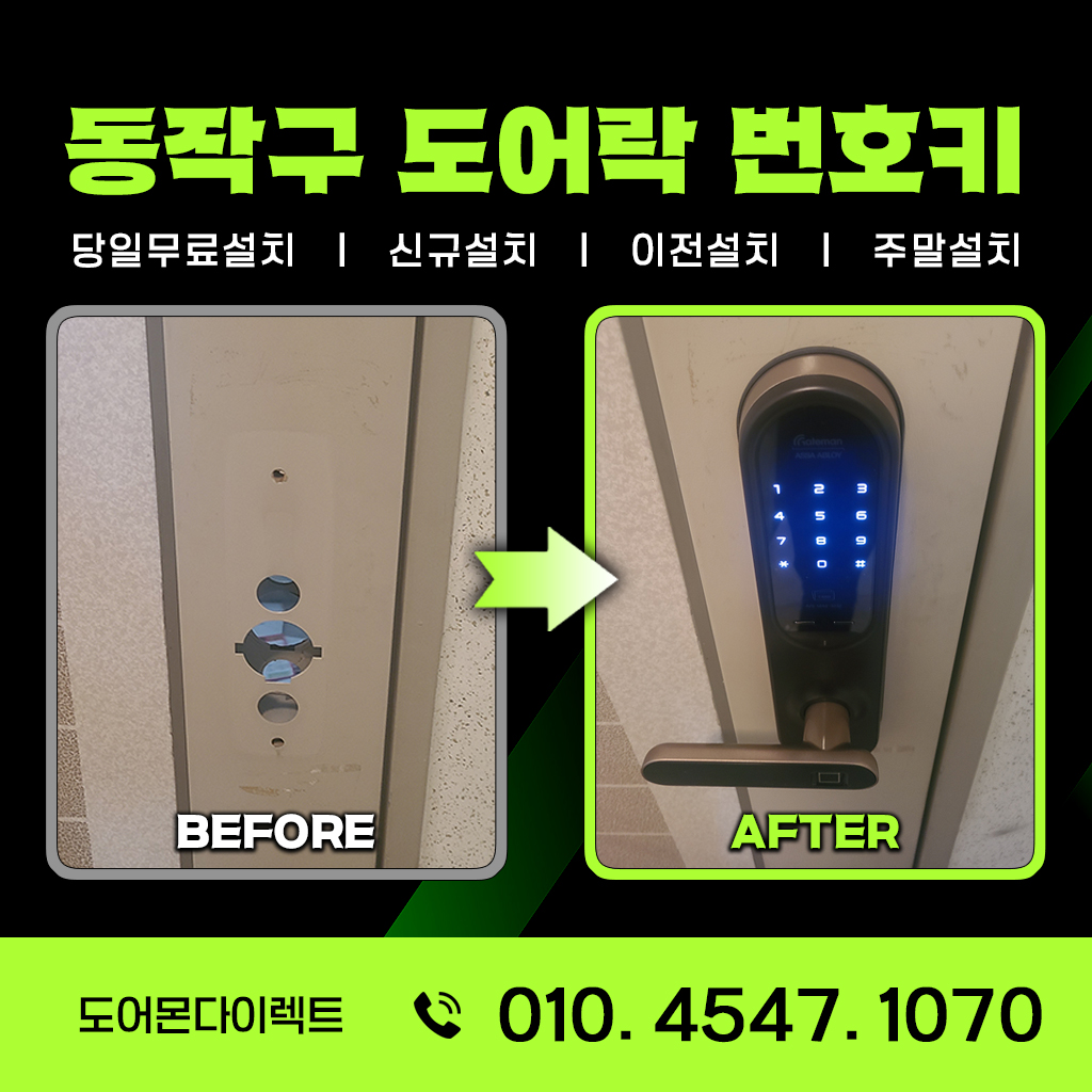 동작구 상도동에는 오래된 아파트부터 최근 지어진 아파트까지 다양한 주거 공간이 있습니다. 많은 아파트들이 생활의 편리함과 보안 강화를 위해 도어락 교체 및 설치를 고려하고 계실 것입니다.