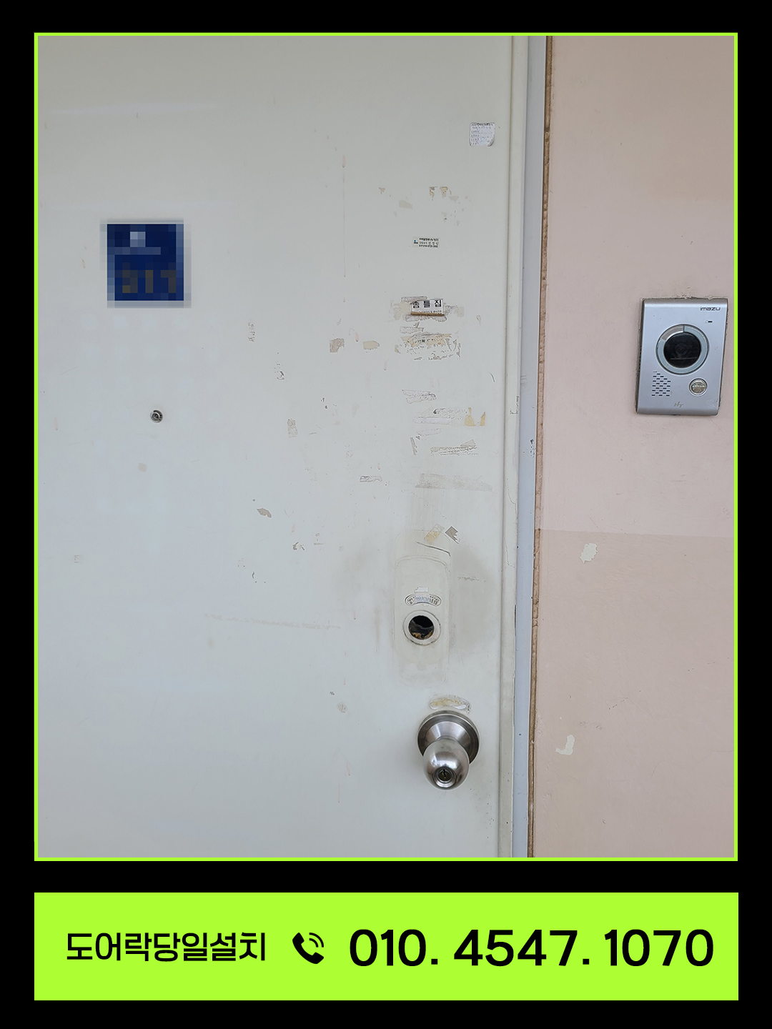 특히 요즘처럼 택배, 음식 배달 등 방문이 잦은 환경에서는 문을 자주 여닫기 때문에 오작동, 배터리 누수, 손잡이 파손 등의 문제가 쉽게 발생합니다.