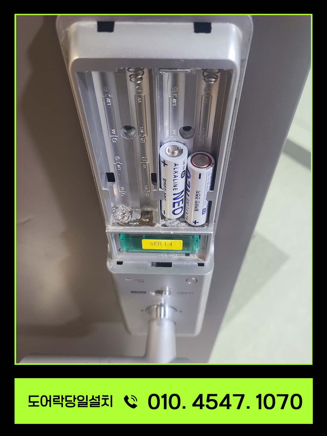 또한 서로 다른 브랜드나 사용 기간이 다른 건전지를 섞어 사용하는 것도 누액 발생 가능성을 키우는 원인입니다. 여름철 고온 환경이나 직사광선이 직접 닿는 현관문 역시 건전지 수명을 단축시키는 요인이 될 수 있습니다.